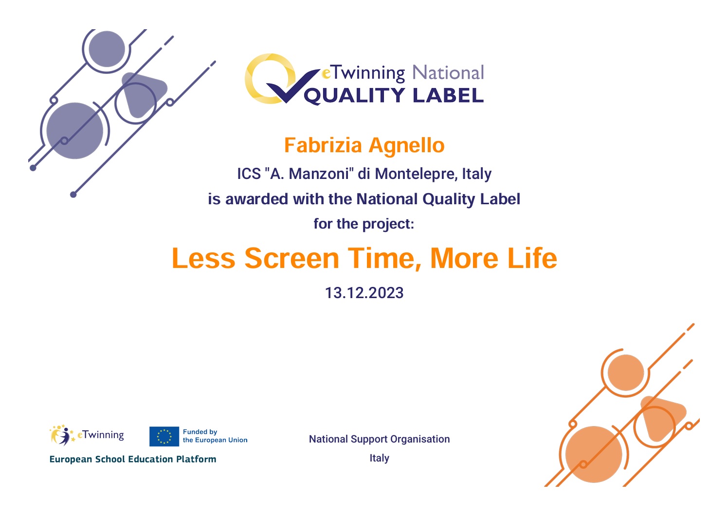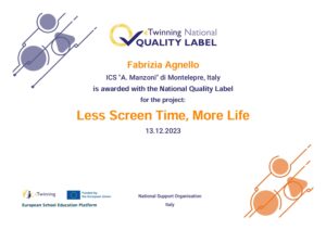 Nell’ambito del progetto eTwinning “Less Screen Time, More Life”, che ha coinvolto i nostri studenti coinvolge studenti e docenti insieme a studenti e docenti provenienti dalla Turchia, dalla Romania e dalla Macedonia del Nord, la nostra Prof.ssa Fabrizia Agnello, docente di Tecnologia nella Scuola Secondaria di Primo Grado, ha tenuto un webinar in Inglese sull’eSafety